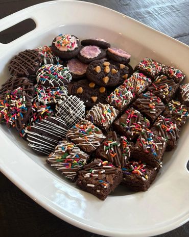 Sink your teeth into our irresistible Brownie Bites, small squares packed with intensely fudgy chocolate flavor, often studded with delightful surprises like crunchy nuts or melty chocolate chips. Each bite is a perfect little indulgence, offering a satisfyingly rich and decadent treat in a convenient, handheld form.