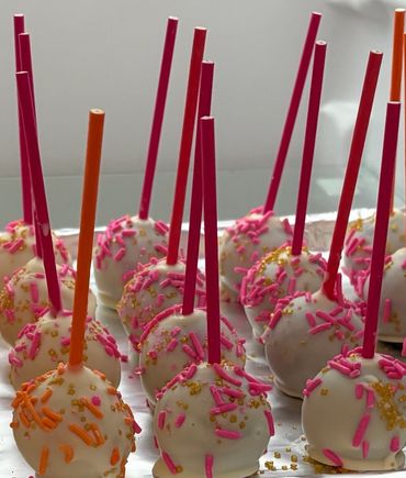 Prepare for irresistible cookie pops: perfectly baked bites dipped in luscious icing and adorned with delightful sprinkles and drizzles, a handheld explosion of joy. These miniature masterpieces on a stick are as beautiful to behold as they are delicious to devour!